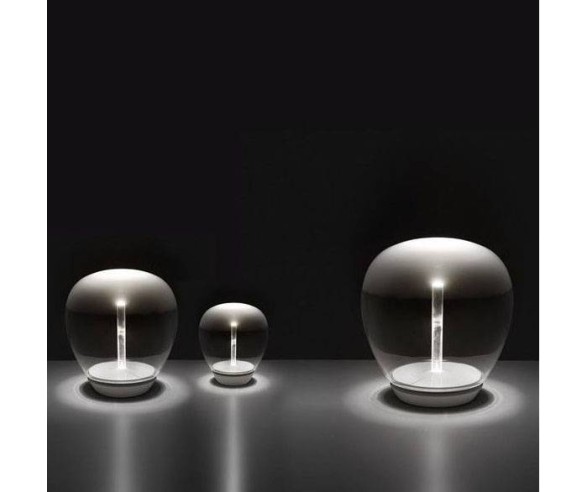 Artemide lighting, empatia series, led table lamp. Empatia is inspired by the association between the great glass-blowing tradition and the LED technology of Artemide. High interest in the expression potentials of this material resulted into co-operation with master glass blowers to gain full control of the special suppleness of Venetian glass and to work on the balance between surface and light, between subtle densities and transparencies.