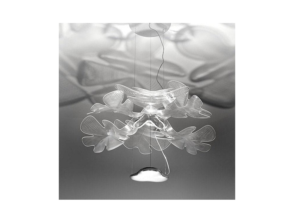 Artemide lighting, led suspension with structure and dissipator in die-cast aluminum with glossy finish, injection molded technopolymer leaves with transparent finish.