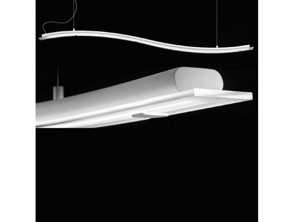 Minimal suspension in its dimensions and sinuous in its form. A suspension lamp with LED source with a unique touch that manages to uniformly illuminate the entire surface of any support surface. The suspension of the Metrica collection by Braga Lighting is a Made in Italy product that guarantees quality and functionality.