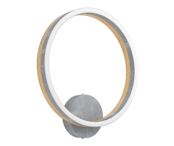 The CADINARO LED wall light is composed of a light ring in veneered oak with a concrete effect and a round metal base of the same color. The LEDs integrated under the white plastic ceiling emit a pleasantly warm white light. This wall light, with its interesting mix of wood and concrete, blends in with modern trends and serves as a particular attraction on the wall in the living room, bedroom, hallway or dining room.