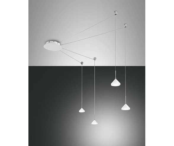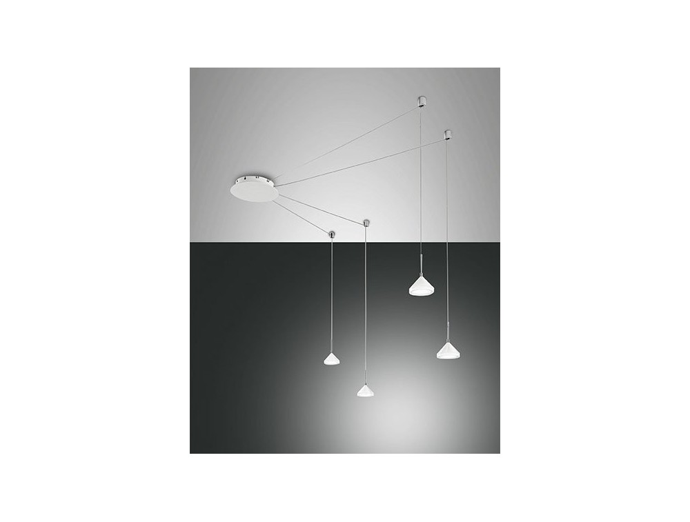 Fabas lighting, suspension lamp made with metal structure and methacrylate diffuser.