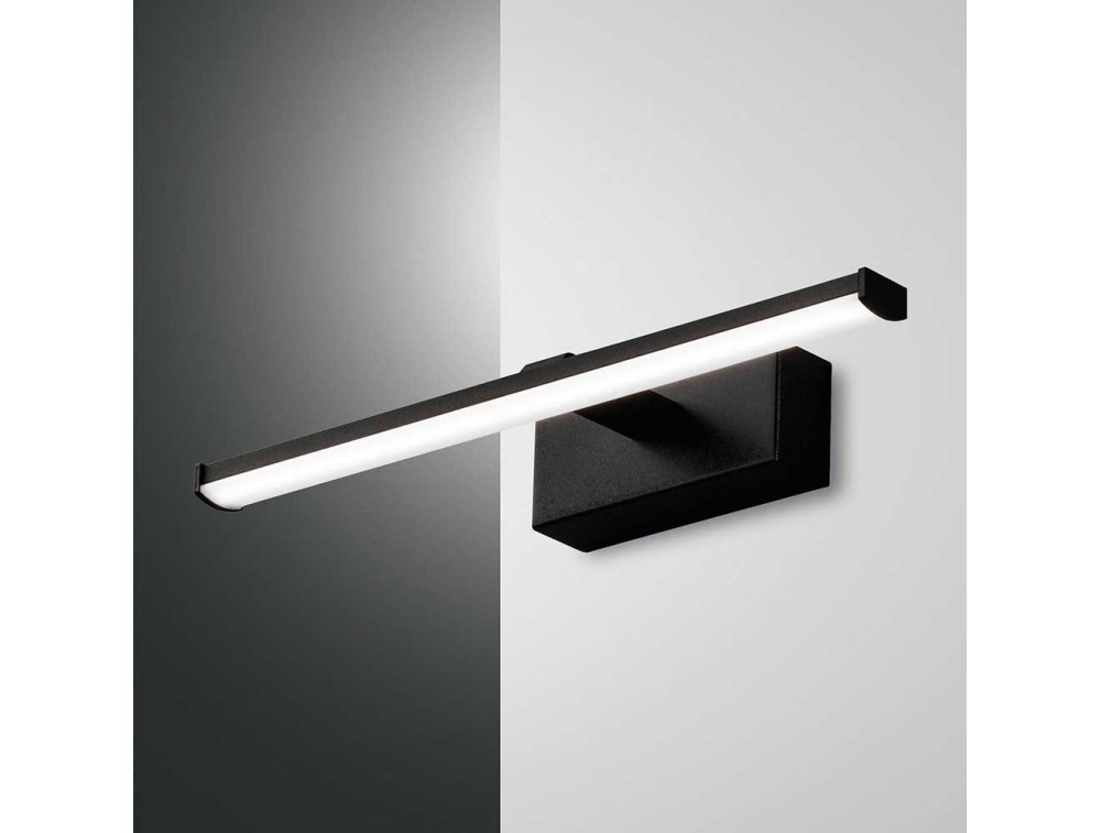 Led wall lamp made with metal structure and methacrylate diffuser, lamp in chrome finish. Modern design wall lamp composed by a basic thin rectangular shape diffuser that, with a touch of innovation, spread the light downwards on one precise spot and indirectly in all the room in which is located. Lamp available in small or big size.