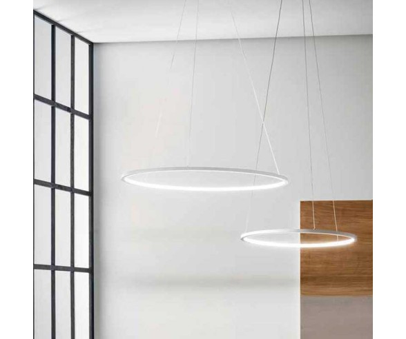 ERIKA adjustable suspension with white satin aluminum frame, opal white silicone diffuser. dimmer and 3000K bulb (not included).
