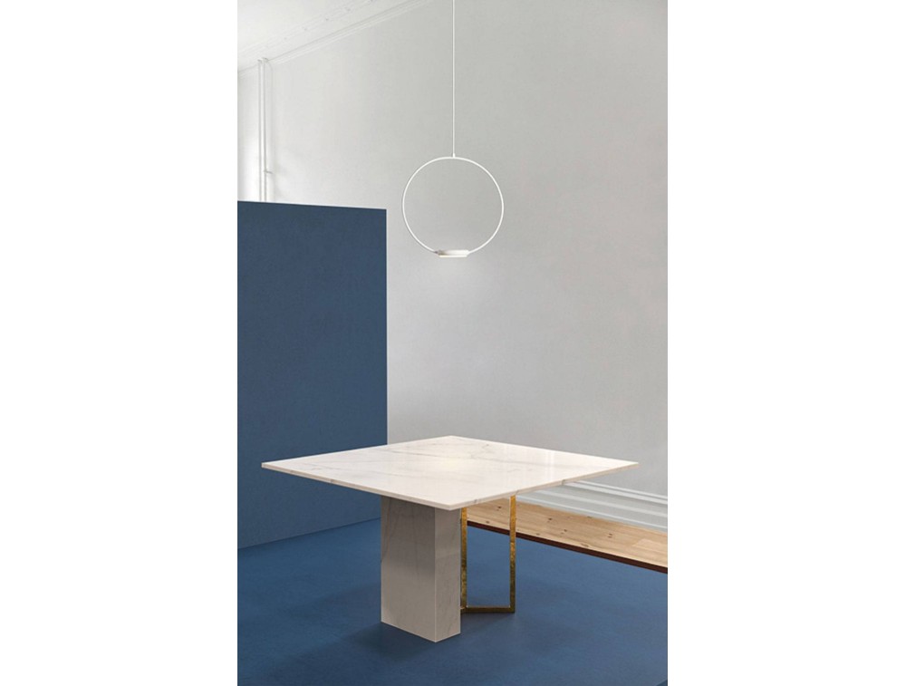 Gibas light pendant lamp in tube and plate steel powder coated. Upper and lower Diffuser in satin methacrylate for a dual light emission.