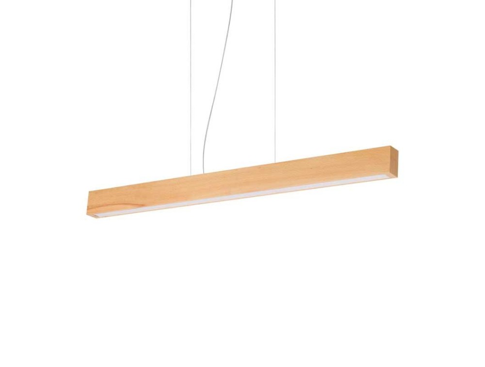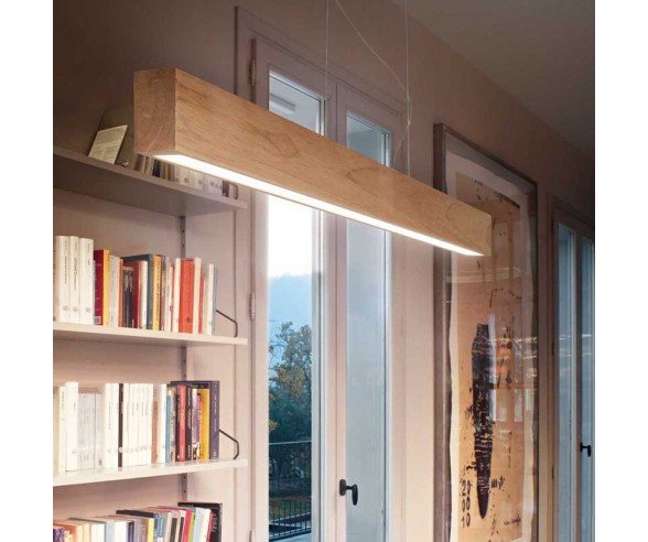 The ceiling rose of the chandelier is made of matt black painted metal, giving it a contemporary and sophisticated look, while the light body is made of natural wood, which adds a touch of warmth and naturalness to the overall design. The diffuser is made of satin opal polycarbonate, which creates a diffused and soft light, ideal for creating a cozy atmosphere.