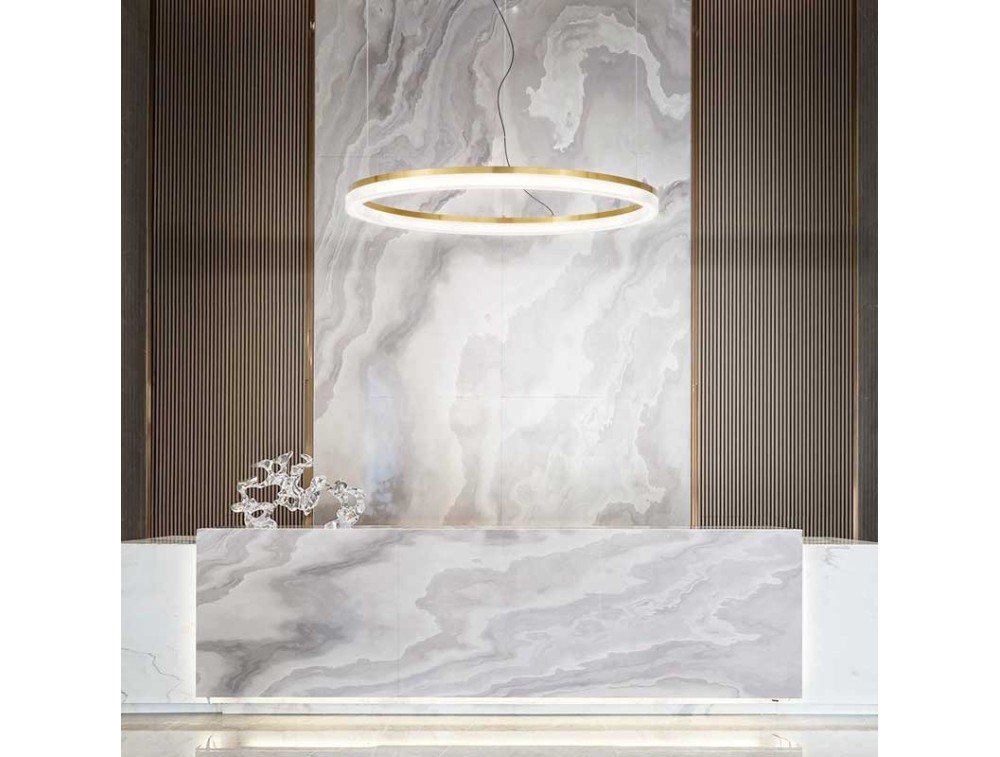 Designer chandelier, ideal for prestigious and large environments, such as a living room or a lounge, but also suitable for hotels, inns, restaurants or office receptions. Two-year warranty included. Estimated LED lifespan of 30,000 hours.