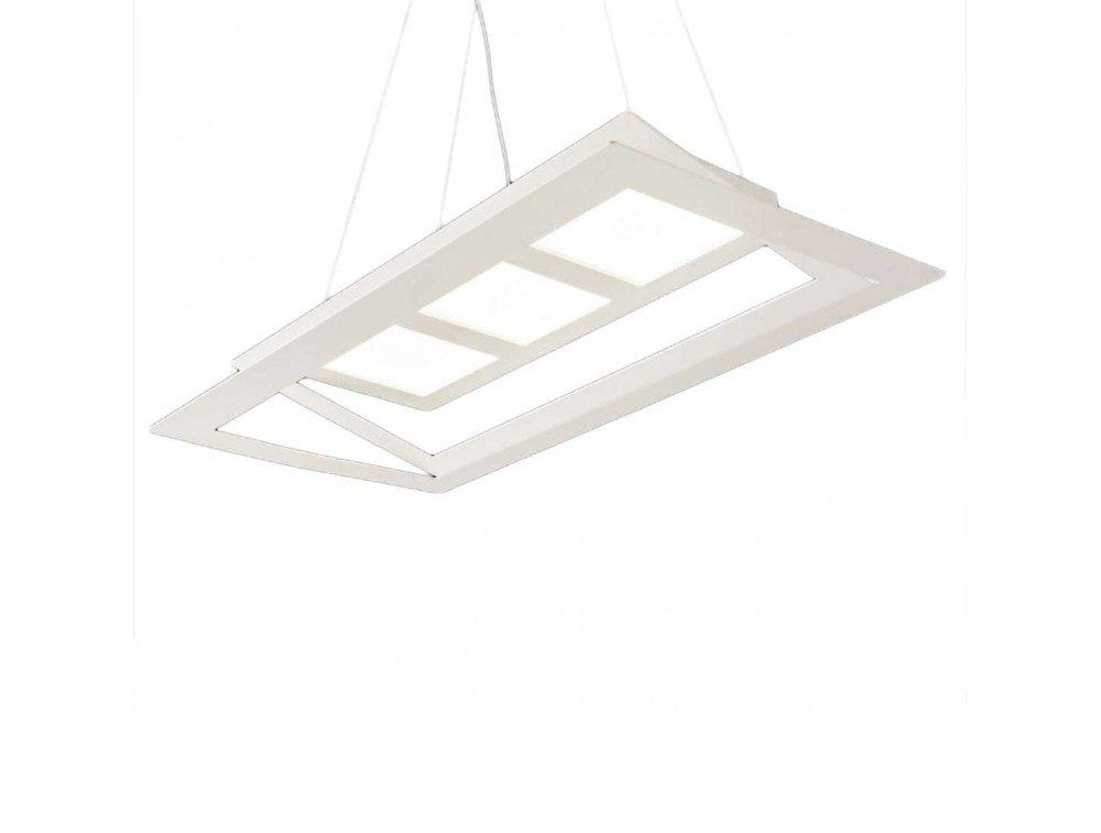 Suspension lamp with white or sand metal frame and white acrylic diffuser.