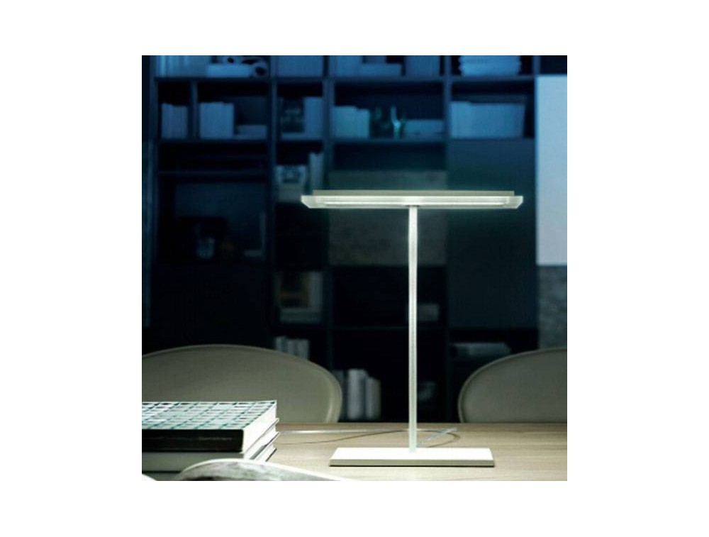 Linea light lighting, modern table lamp made with white varnished metal structure and satin polymethacrylate diffuser