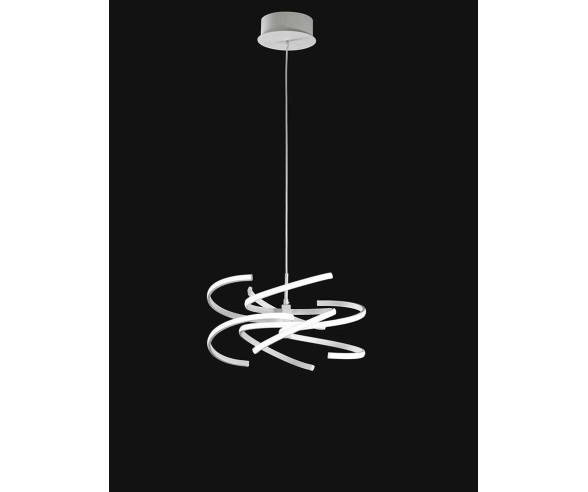 Suspension lamp made of metal frame painted white or polished chrome and acrylic diffuser. The wavy, modern, innovative spiral line of this lamp is exalted by the excellent light output of the LED source. Ideal for bedside tables and tables of modern and linear style. Available in two sizes for environments of any size.