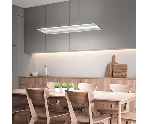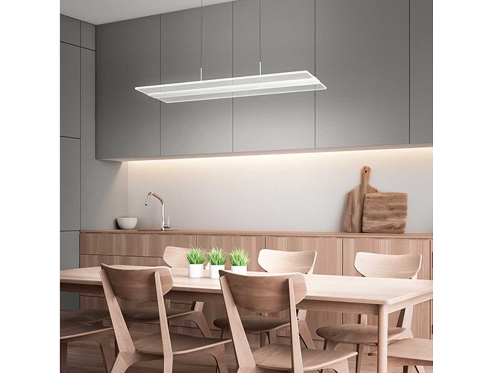 Modern suspension for interiors, light and minimal, it is ideal for illuminating and at the same time furnishing modern environments such as the dining room, living room or bedroom. Equipped with a switch, by quickly turning the item on and off, it is possible to switch from 3000K to 4000K up to 6000K light.