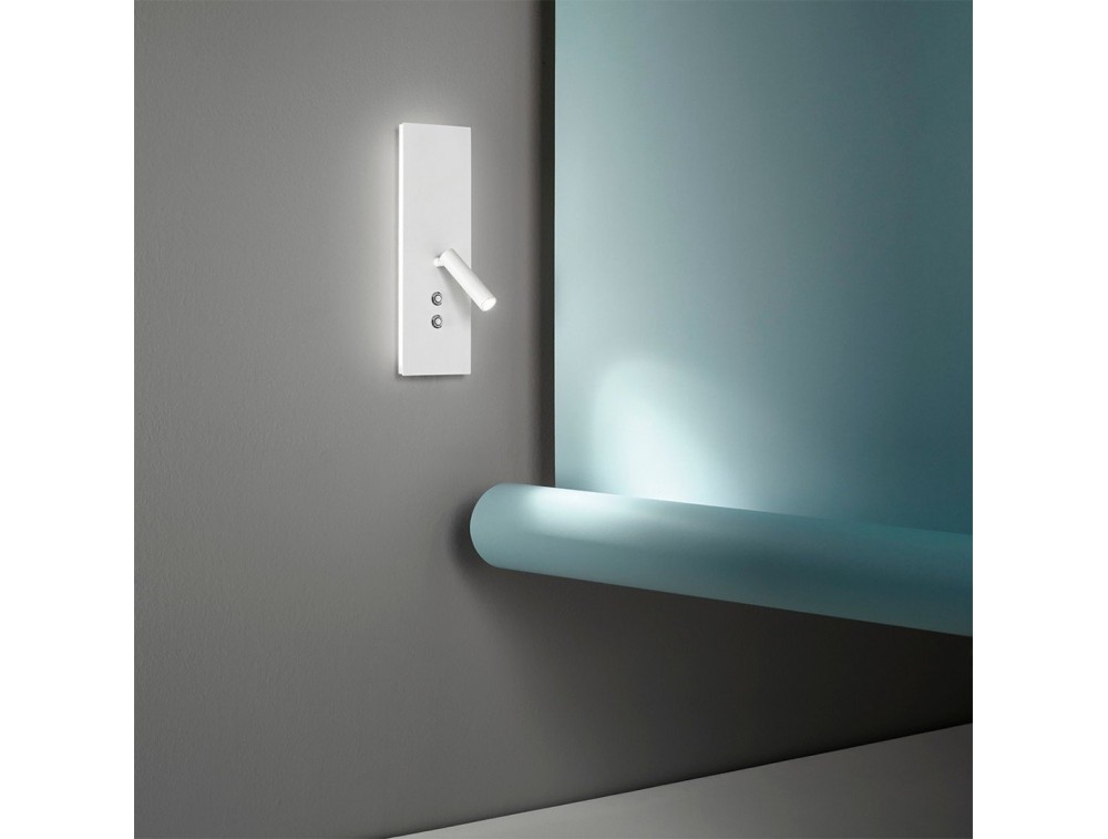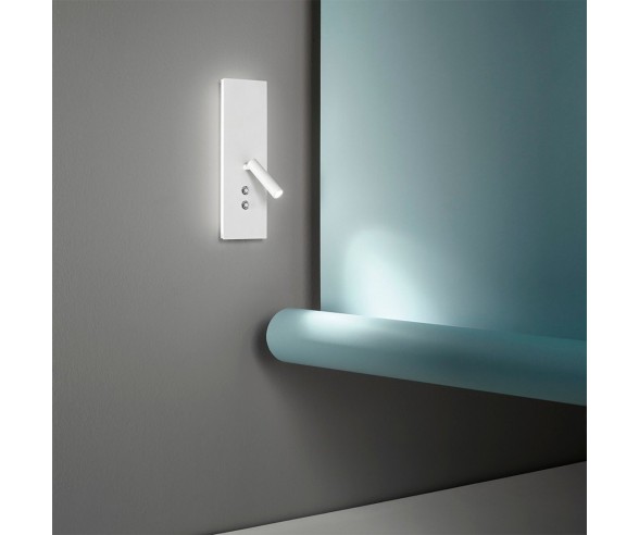 Perenz lighting, modern wall lamp composed of a decorative base that provides a courtesy light reflected on the wall, and an adjustable spotlight that illuminates a beam. Ideal wall lamp to be placed next to the bedside table to make evening readings in bed easier and more pleasant.