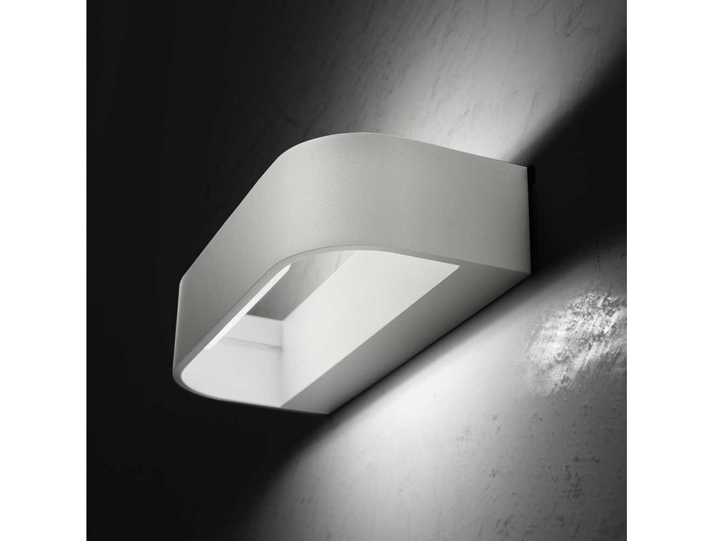 Modern led wall lamp made with aluminum structure varnished in white colour. Wall lamp with clean and geometric double output light source with LED source that guarantees indirect and reflected lighting. Ideal lamp for environments where light remains for many hours switched on and continuously.