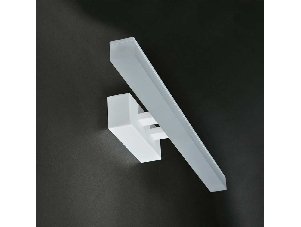 Ruler wall lamp composed of a white or chrome metal frame on which a satin acrylic diffuser is applied which projects the light downwards.