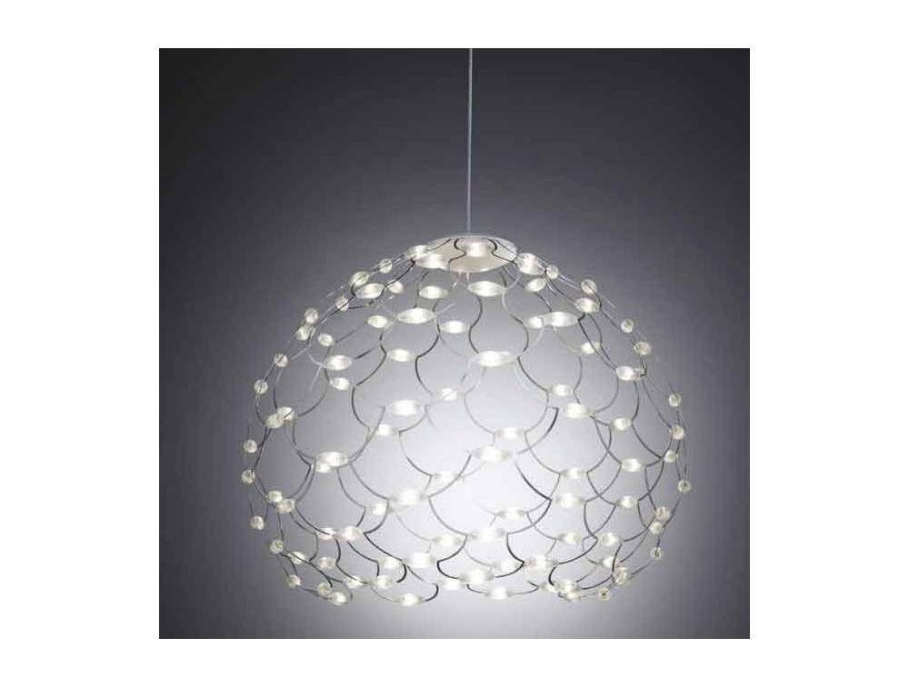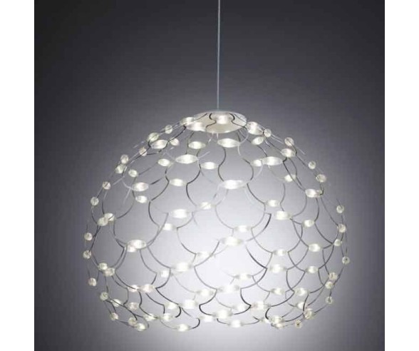 Led suspension made with metal structure available in chrome or copper finishes. Modern and particular lamp, guarantees a perfect lighting of the environment and creates a suggestive atmosphere thanks to the metal net containing the led lights; The Lamoi collection, being very versatile, is ideal for different situations, be they public or private. Available in three dimensions to satisfy every consumer need. Lamp equipped with a dimmer function that allows the consumer to adjust the intensity of the light beam of the lamp according to the needs.