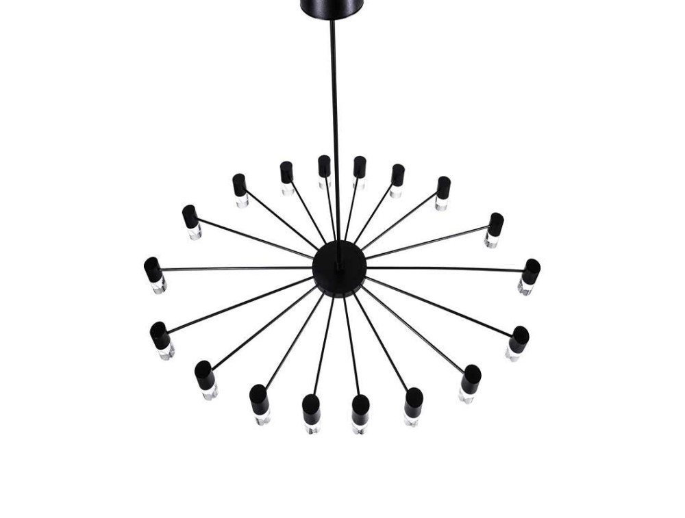 The body is in black aluminum, while the semi-transparent acrylic diffusers. The diameter is 110 or 120 cm.