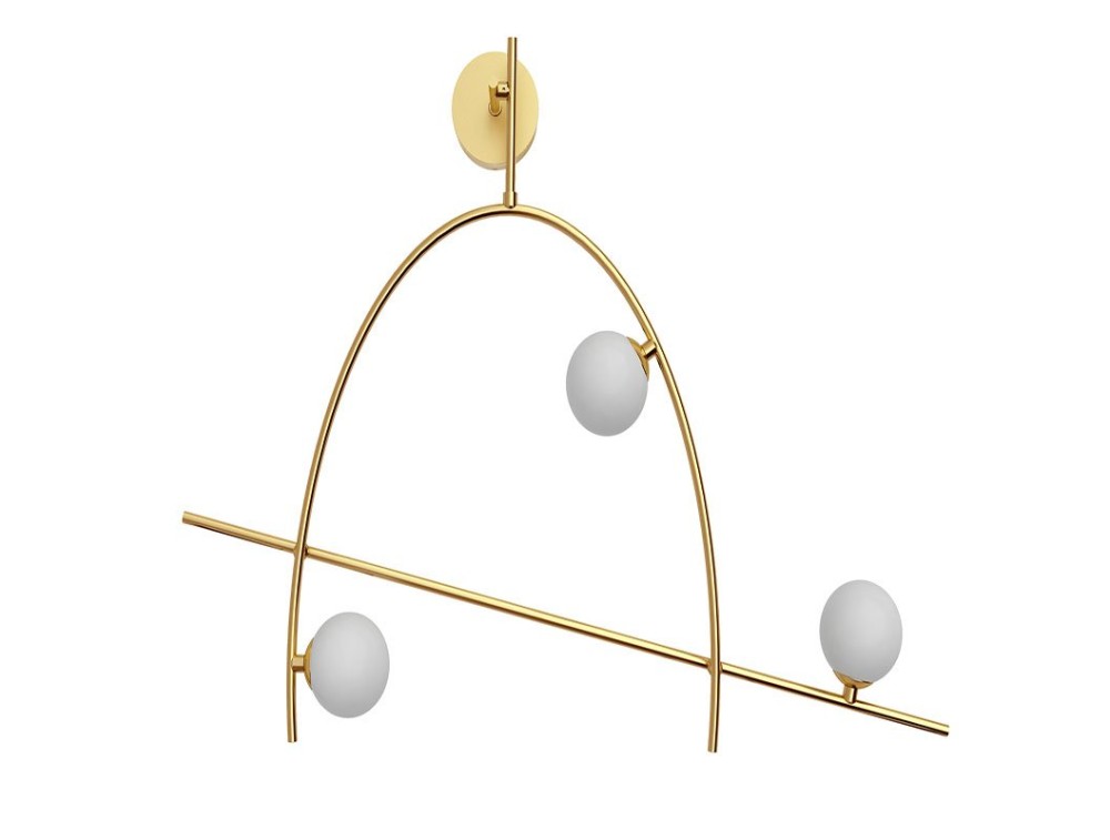 VIVIDA INTERNATIONAL, Wall lamp with golden metal frame and glass diffuser.