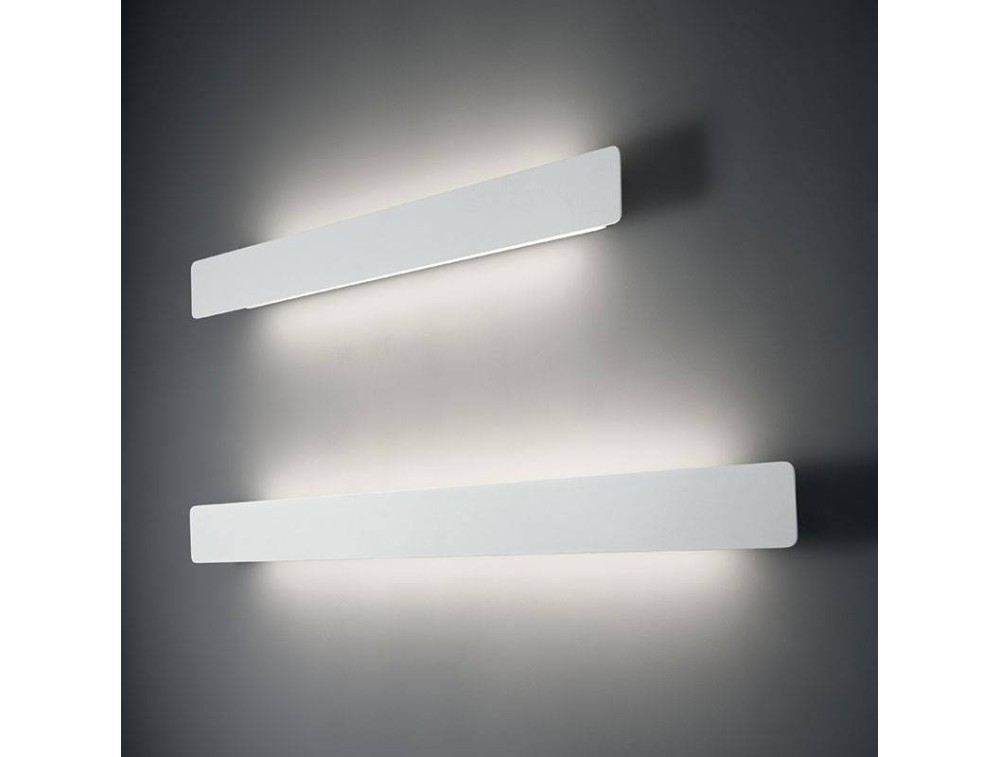 Wall lamp made with aluminium and acrylic structure. The light emerges as if by magic washing the wall and spreading out in the environment. A basic and bright design lamp thanks to its rectangular diffuser shape. Ideal in bathroom, aisle, bedroom and living zone of modern design.