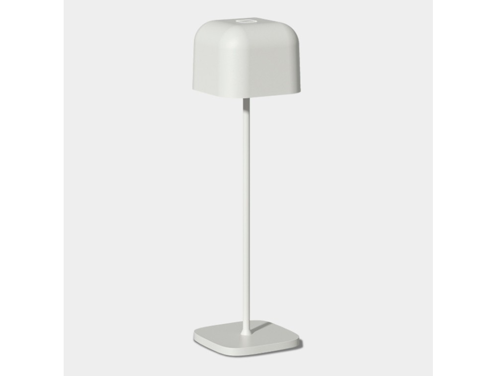 Table lamp made of aluminum with a polycarbonate diffuser. A perfect combination of contemporary aesthetics and technical durability, it's ideal for illuminating outdoor tables, terraces, or gardens. IP65 protection is essential for outdoor use, as it's completely dustproof and can withstand water jets from any direction without damage.