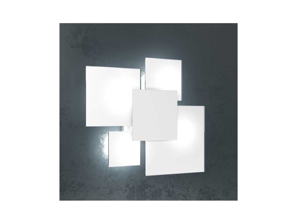 The Upgrade ceiling lamp consists of four square elements with a white painted metal structure and a front plate available in various finishes: white, anthracite, grey, brown, sand, silver leaf, copper leaf, gold leaf. The diffusers are made of extra-clear white screen-printed glass. Thanks to the extremely thin depth it is possible to install it both on the wall and on the ceiling. The modern and attractive design make this element the perfect solution to complete the furnishing of your living room, goddess dining room, bedroom or bathroom.