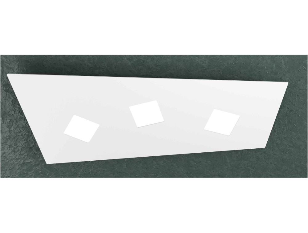 Modern ceiling lamp made of painted metal structure available in gray, sand or white finishes and acrylic diffusers. A lamp that reflects its light beams directly downwards alone or in combination with other elements of the same collection. Modern lamp with irregular shaped rectangle design, containing small squares, also arranged in an irregular manner, from where the light is filtered. Ideal in environments of all sizes, such as living room, office, bedroom, aisle and modern and linear design bathroom.