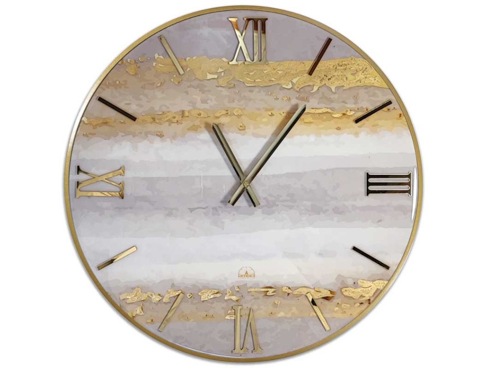 This clock is a variation on the abstract style, featuring a cool, neutral color palette, highlighted by metallic details. It's a sophisticated furnishing accessory, ideal for contemporary spaces that favor neutral tones. Shipping is free and comes with a 2-year warranty.