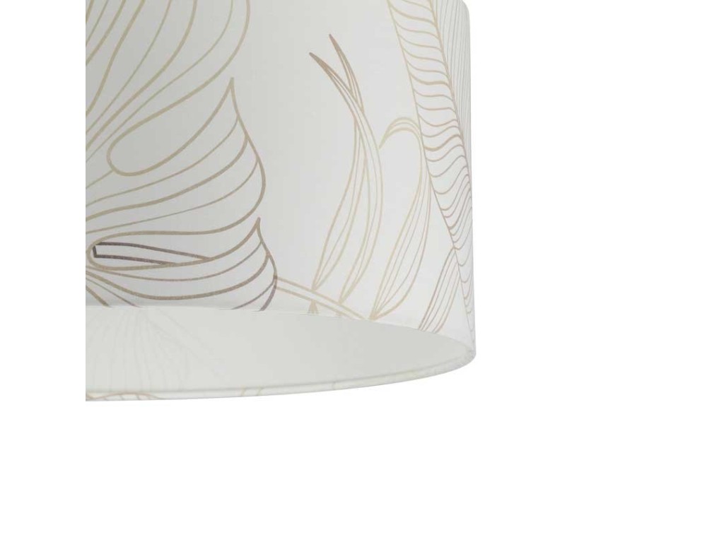 White fabric ceiling lamp with gold decorations. Very bright ceiling lamp with E27 lamp holder where you can choose the ideal bulb for your environment.