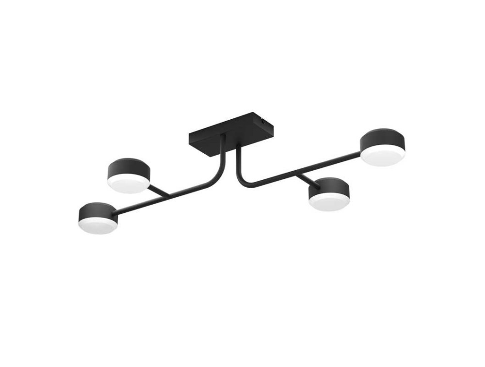 The CLAVELLINA LED ceiling light consists of a black metal base with metal branches and four round black metal light heads. The integrated LEDs, placed behind the white acrylic surface, spread a warm and welcoming light. With its characteristic design, it is ideal for the living room, study or bedroom.