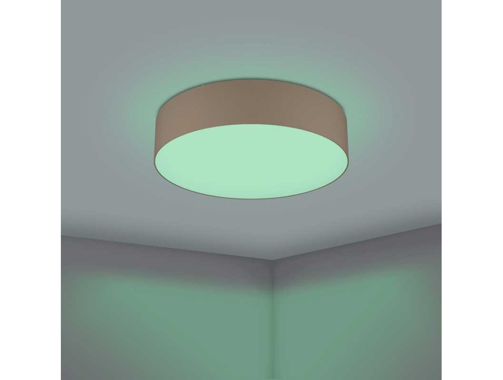 Ceiling lamp in white, gray or dove gray fabric with white polycarbonate diffuser from which the LED light comes out. Integrated LED color changer, Control via app, dimmable, Smart Home, Remote control.