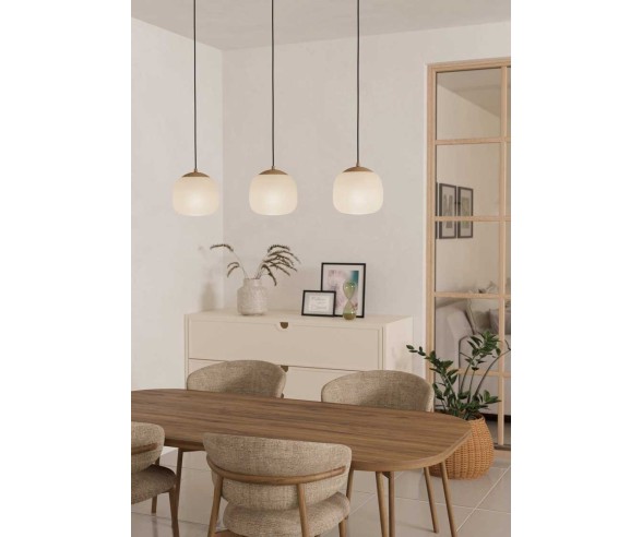 The lamp is made in dove gray with a sand-colored acid-etched blown glass, ideal for being placed above a dining table.