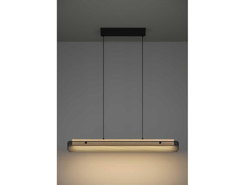 Modern chandelier in black steel and brown wood with LED included color changer, App control, dimmable, Smart Home, Remote control.