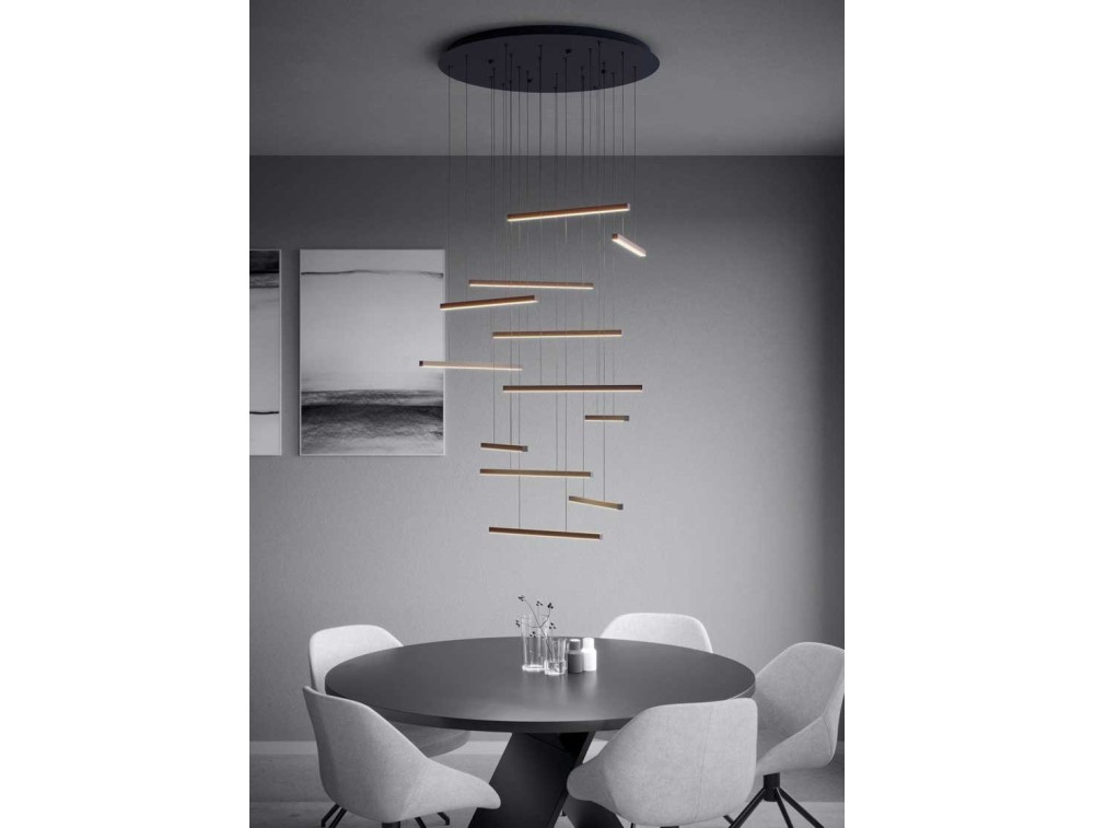 Ideal chandelier for medium-sized rooms, such as a kitchen, living room or dining room. Modern design pendant rods with integrated LED 3000k warm white light, ideal for directly illuminating a dining table, a peninsula or simply the room in which it is placed.
