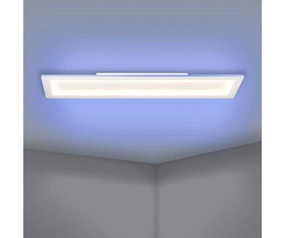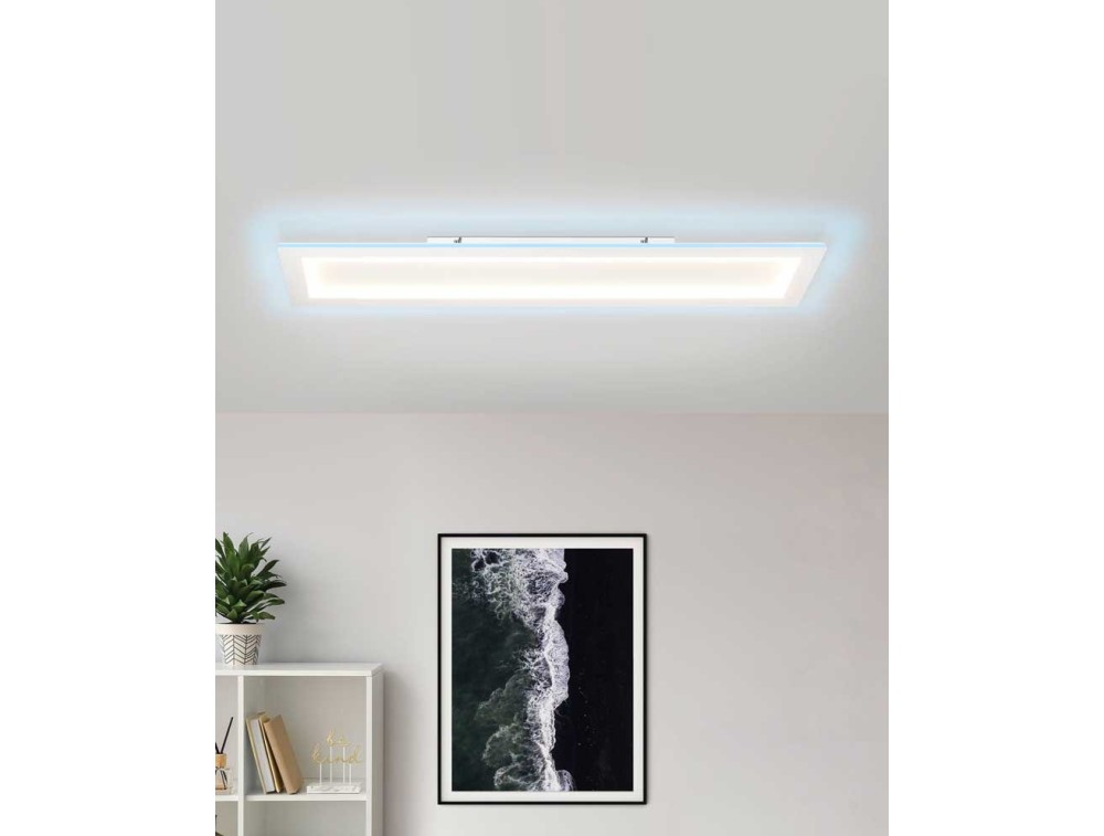 White steel ceiling light with white polycarbonate ideal for a kitchen or living room. Integrated color-changing LED, Control via app, dimmable, Smart Home, Remote control
