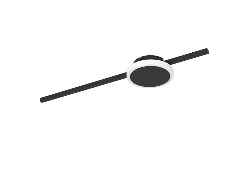 The SARGINTO LED ceiling light consists of a white metal LED profile and a round metal element. The white metal element is also surrounded by a plastic light surface.
