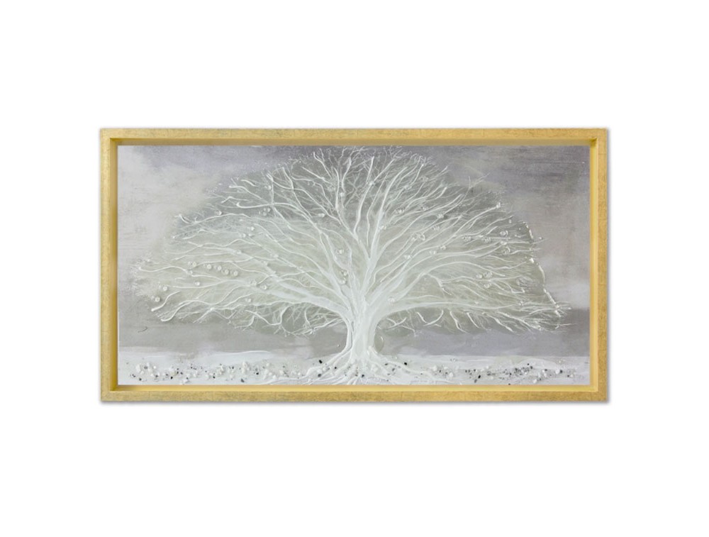 Floral painting, image printed on high-quality polymer paper and applied to a high-density MDF panel. Each painting is entirely hand-decorated with glossy resins, crystals, and colored stones, with tone-on-tone brushstrokes and textured pastes applied to enhance the piece. A frame, available in gold, silver, or white, is included. Ideal for the kitchen, living room, and bedroom.