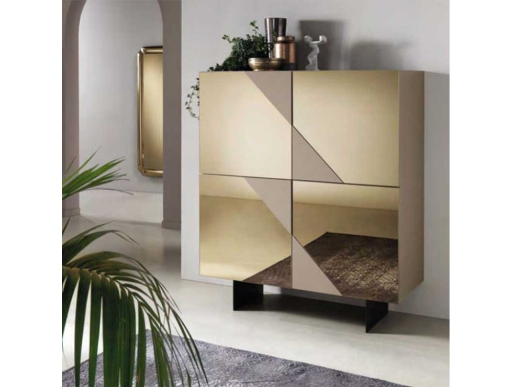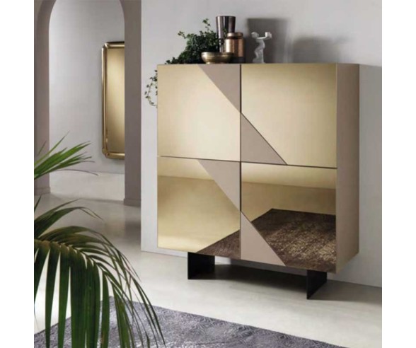 ARTE sideboard with melamine shell and mdf doors covered in mirror glass. Base in black painted metal or feet on request.