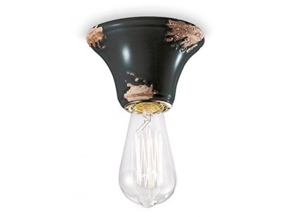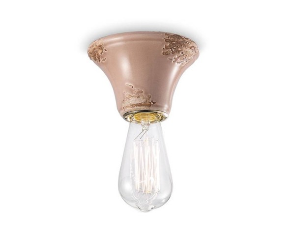 Ferroluce lighting, ceiling lamp made with metal structure and aged ceramic base glossy glazed.