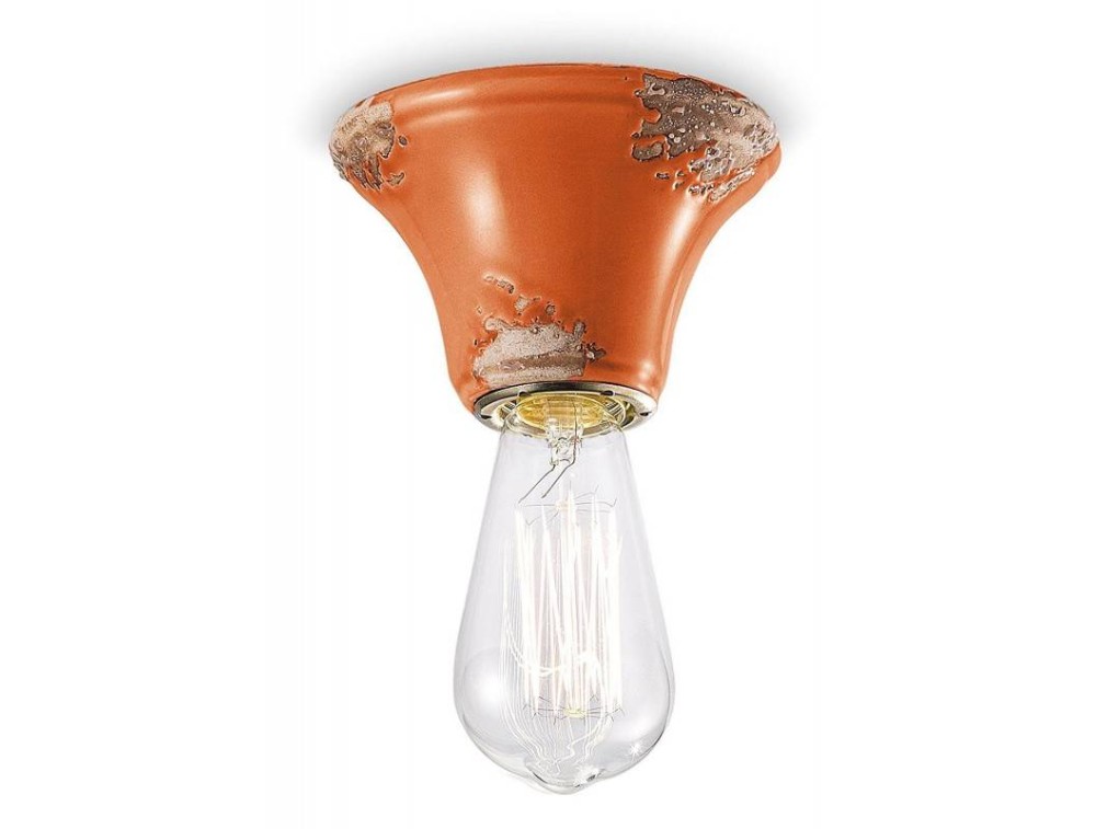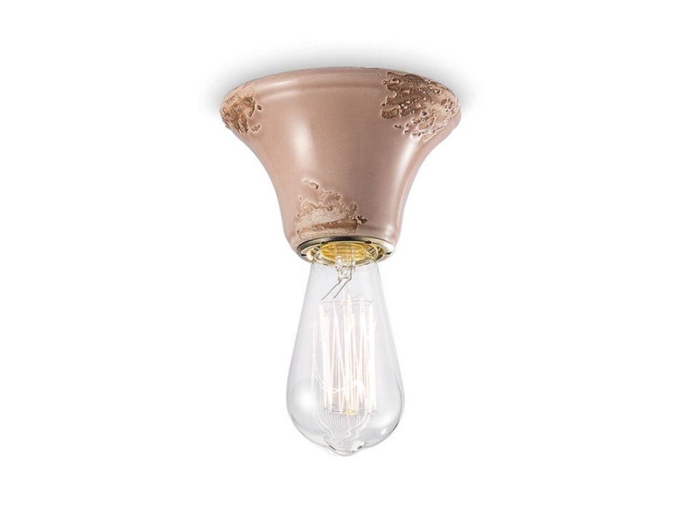 Ceiling lamp made with aged metal structure and glazed ceramic lampshade in various colors. It is the combination of ceramic, glass and metal that makes this suspension with irregular features unique. Lamp that gives wide light thanks to the glossy glass that allows you to spread light throughout the room in which is placed.