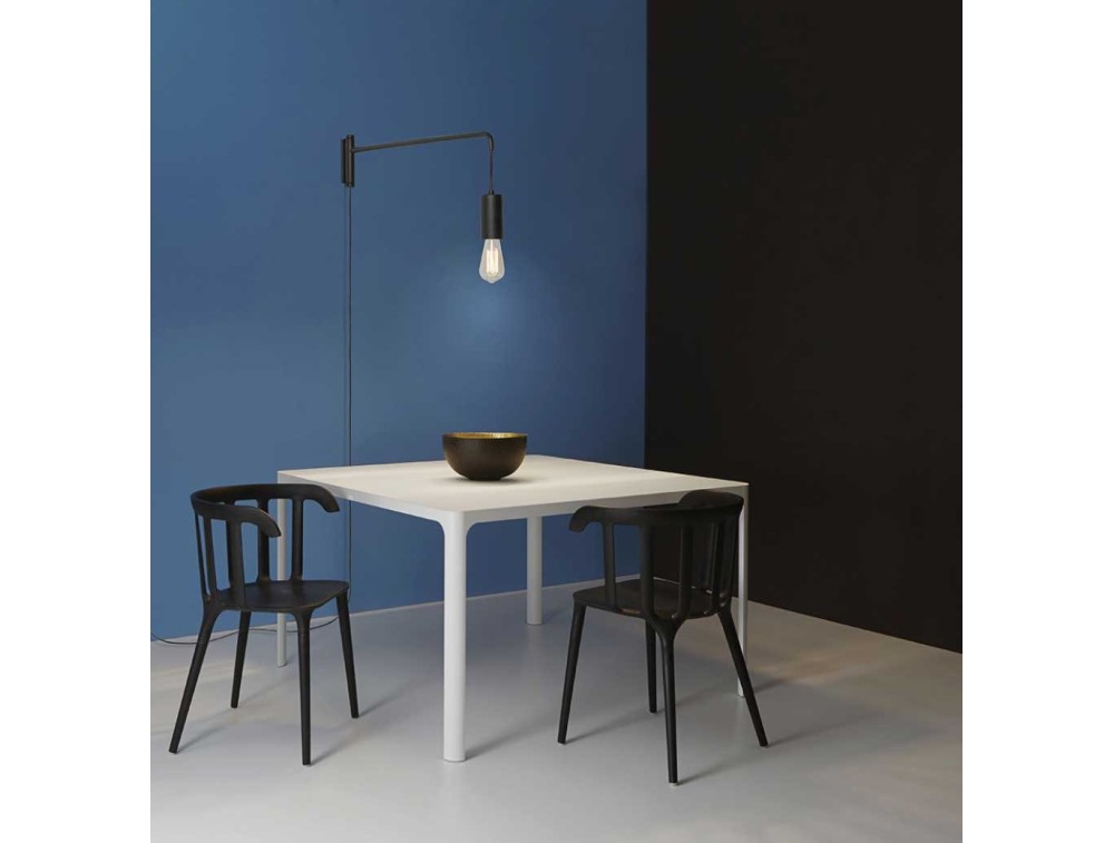 Family of suspension and wall lamps in epoxy powder coated steel plate. Each lamp, with the appropriate ring nut, can easily be combined with an aluminum diffuser disc making it versatile for any room. In particular, this lamp is ideal in rustic style rooms.