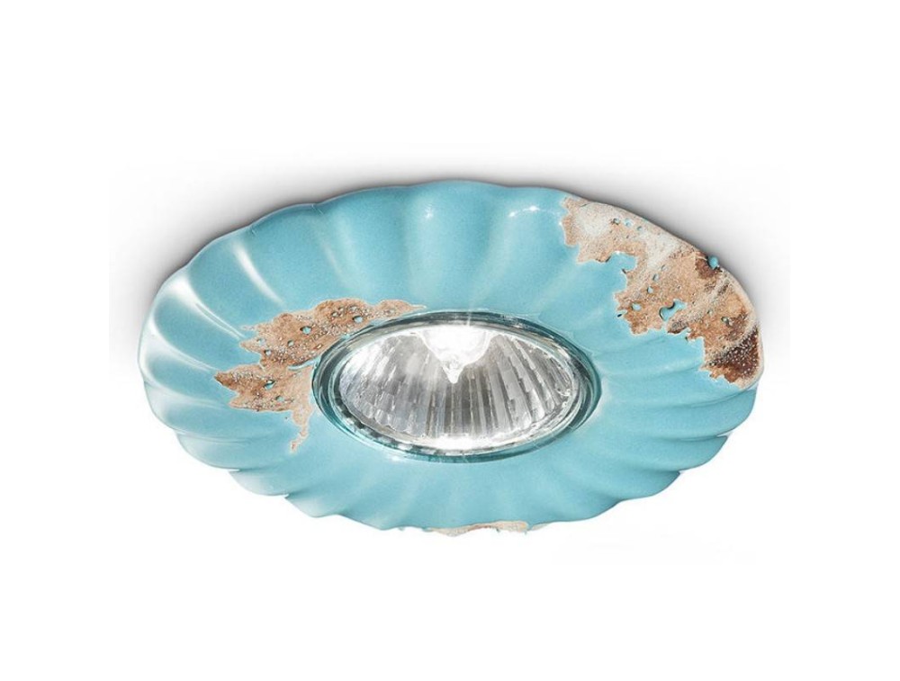 Recessed light made with polished glazed aged ceramic structure in different finishes. Thanks to the use of glazes able to give the surface a tactile and visual look, and the retro colors, this lamp with the most innovative lighting solutions manages to transfer a nostalgic flavor. It is the combination of ceramic, glass and enamel that makes these lamps with irregular features unique.