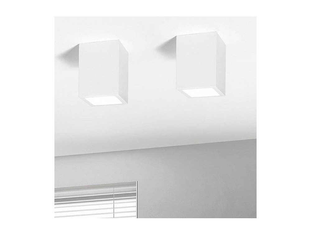 Spotlight made with paintable plaster structure. Lamp with a clean and luminous design, made of a cubic shaped plaster diffuser containing the light source. Ideal for lighting certain spots where functional light is required or to highlight objects.