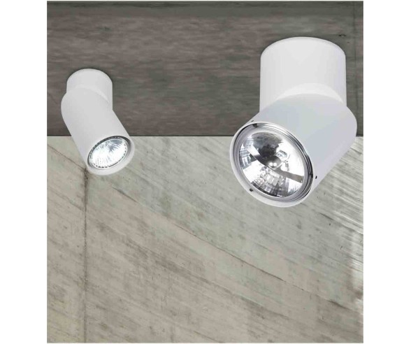 Modern wall lamp or ceiling lamp made entirely of white metal with 180 ° inclinable diffuser. Essential design lamp that offers a direct light beam at any point you want, functional thanks to the inclination of the diffuser. Lamp that allows indirect lighting in all the environment in which is placed. Ideal in modern design environments.