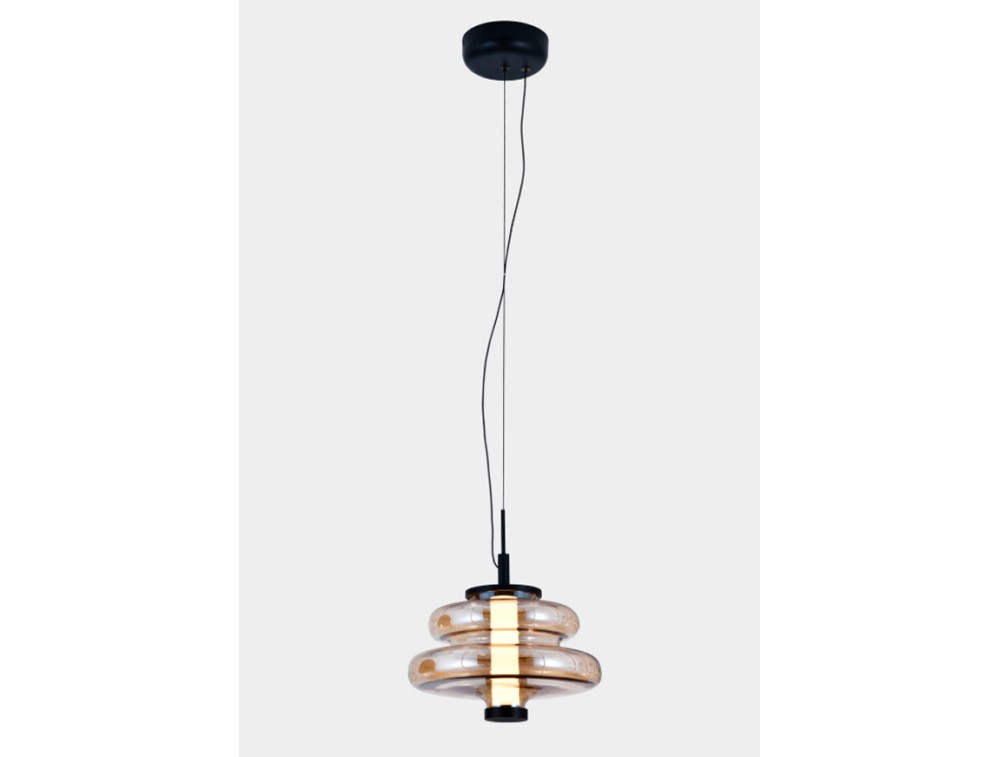 Aluminum pendant light with a diffuser available in various colors, including amber or smoke. Built-in 2700K LED and IP20 protection. Perfect for illuminating and decorating kitchens, living rooms, and bedrooms. Ideal for creating color and size combinations for a unique and personalized space, creating a sculptural visual effect even when the light is off.