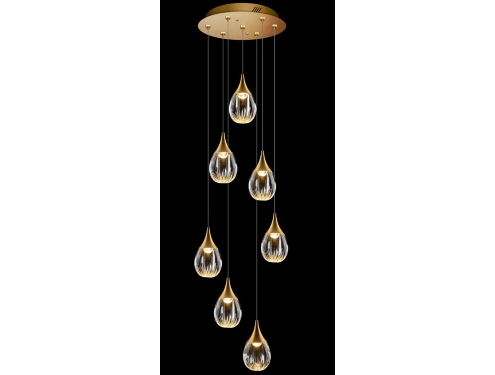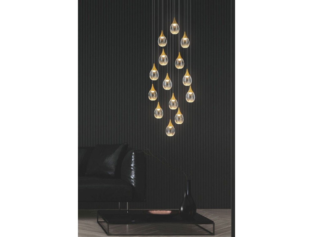 Extraordinary rectangular pendant lamp with 7, 14, or 20 lamps, available in satin gold and polished chrome finishes, creating a timeless and elegant lighting effect. Acrylic diffusers and 3000K LEDs. Made of metal and crafted glass. *Pendants can be shortened to the desired height*