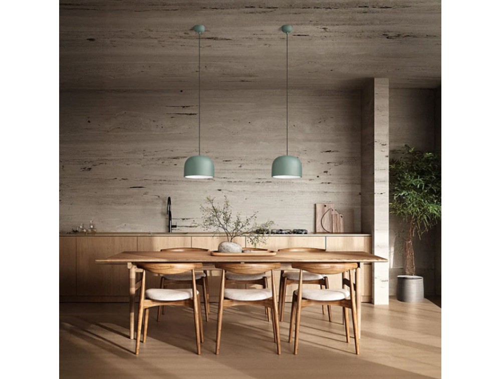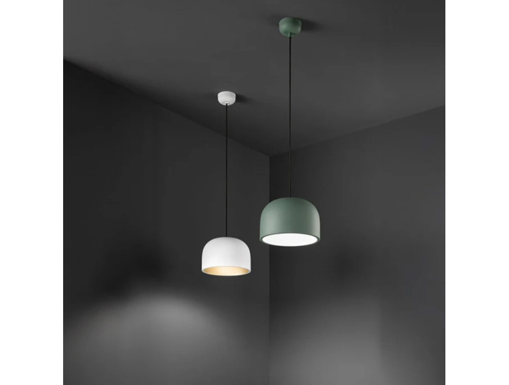 Featuring a modern and sophisticated design, it is made of aluminum and metal painted green and white or white and gold, both designed to enhance contemporary spaces with a touch of personality. The cable is adjustable up to 220cm. Equipped with an E27 lamp holder, it offers maximum freedom in choosing the light source, easily adapting to different moods and intensity requirements.