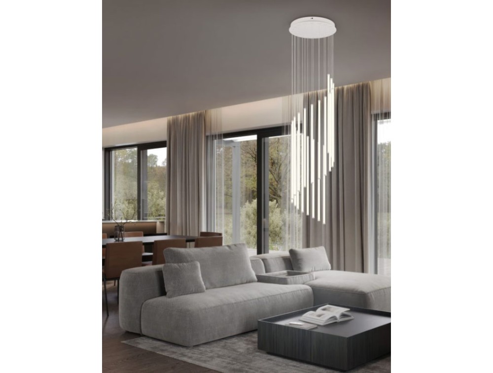Metal pendant light with integrated LED and dimmable function. Ideal for kitchens, living rooms, and bedrooms. Height-adjustable. 5-year warranty on LEDs.