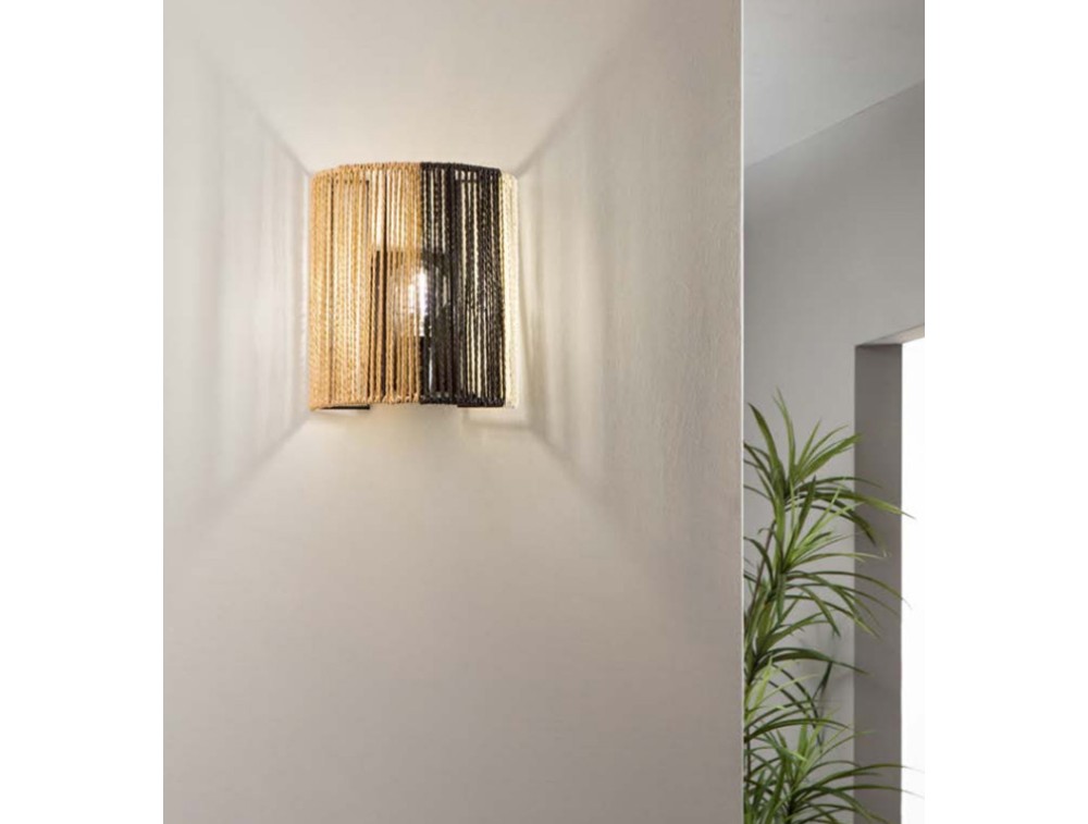 This wall light is not your average lamp, but a designer piece that conveys a sense of warmth and authenticity. The cord strands, wrapped around a hidden frame, are not just a covering, but the very essence of the lamp. The combination of three colors creates a striped effect that adds dynamism and a touch of creativity to the space. Shipping is free and the warranty is 2 years.