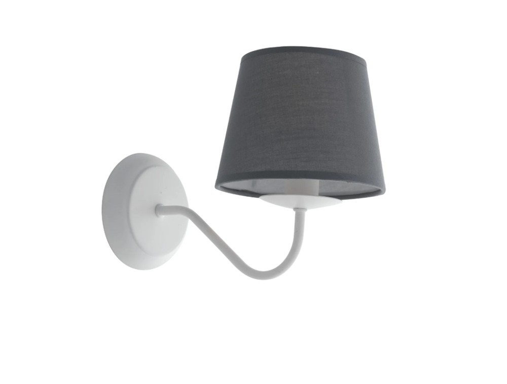 White metal wall light with gray fabric lampshades. For kitchens, living rooms, and bedrooms.