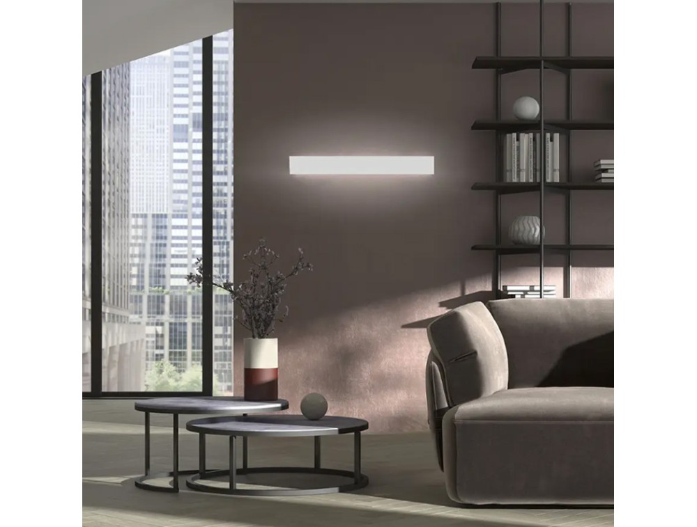 Integrated LED wall lamp, indirect light, painted metal frame. Perfect for decorating and illuminating kitchens, hallways, living rooms, and bedrooms. Available in various sizes and colors.