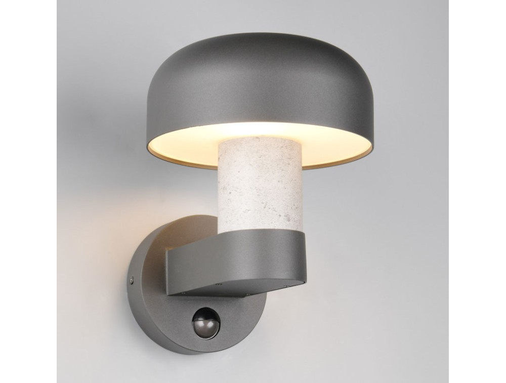 Outdoor wall lamp in die-cast aluminum, available in wood and anthracite or concrete and anthracite. Available with or without a motion sensor. IP54 protection, especially against dust and splashes of water.