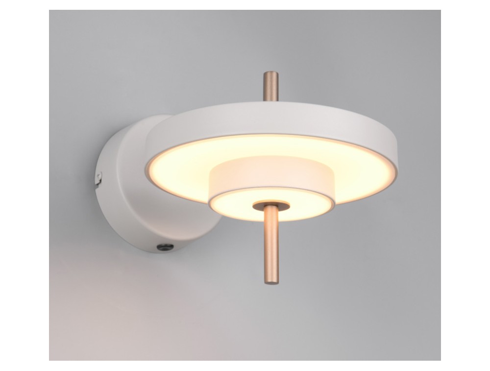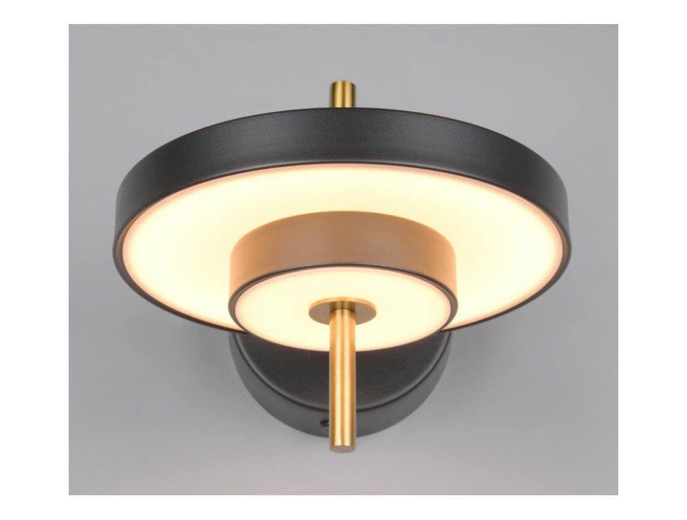 Metal wall lamp in warm gray and coffee or black and coffee. For kitchens, living rooms, bedrooms, and hallways. Dimmable. 5-year LED warranty and IP20 protection.